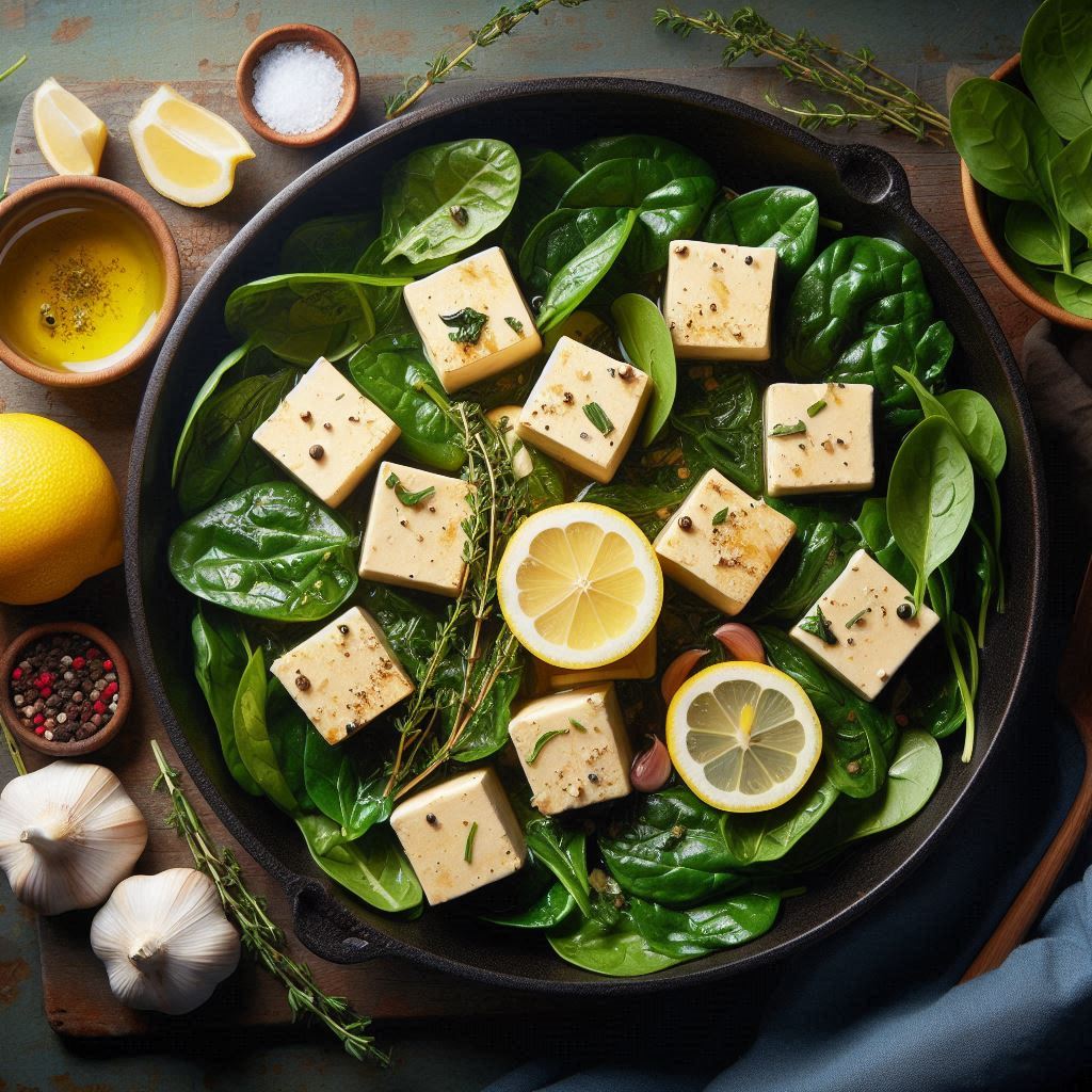 4. One-Pan Lemon Herb Tofu with Leafy Greens