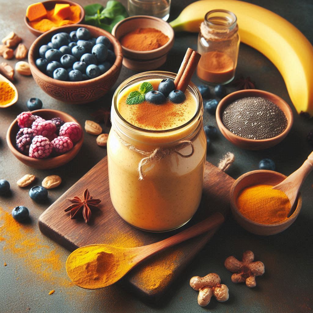 1. Combine all ingredients in a blender. If you'd like, add a small amount of maple syrup. Also, add a pinch of black pepper to help activate the turmeric.
